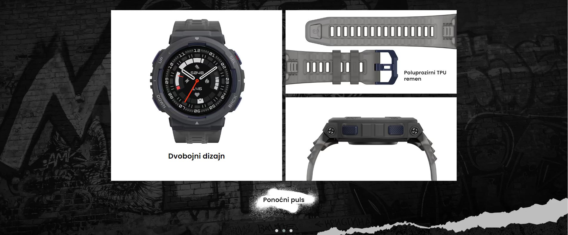 | Zaslon | TFT Veličina 1,32″ Rezolucija 360×360 PPI 277 Stakleni materijal + premaz protiv otisaka prstiju |