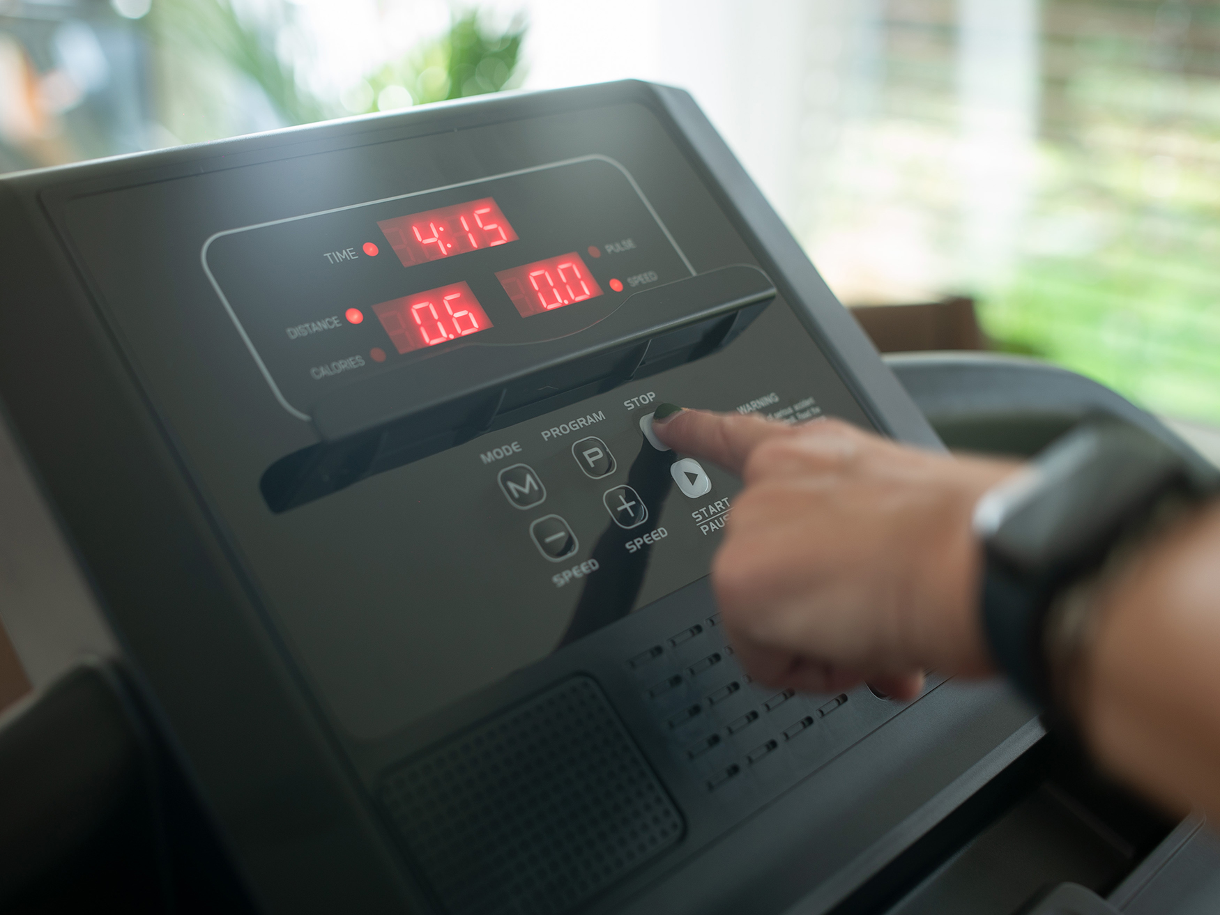 Traka za trčanje, pogodna za trčanje kod kuće, s ugrađenim amortizerima. Staza nudi i razne programe treninga.