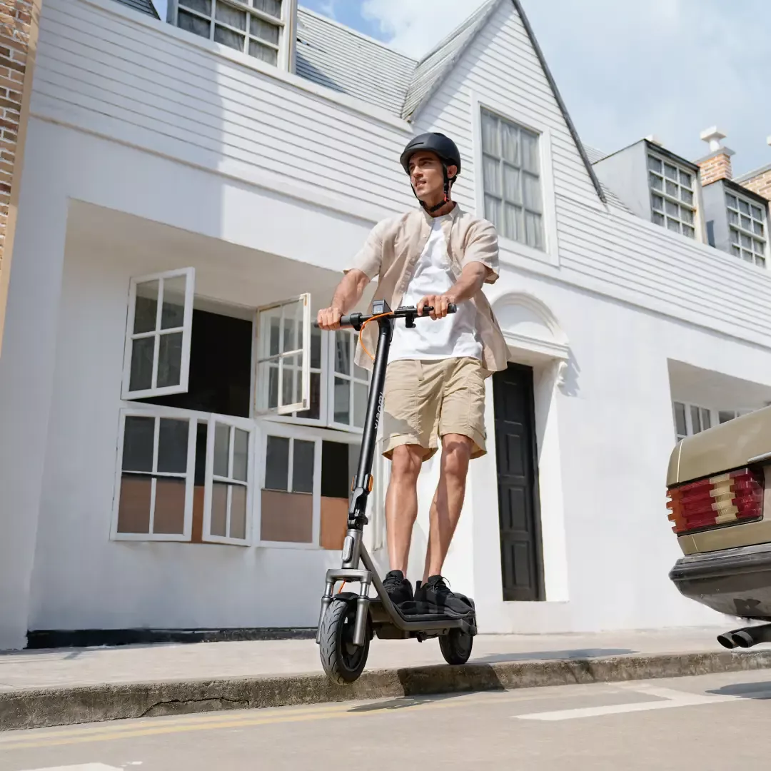 Pneumatske gume od 10“ osiguravaju stabilnost i bolje prianjanje, bilo da vozite po asfaltu, preko usporivača ili laganom šljunku.